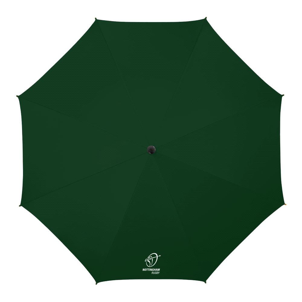 Large umbrella in Forest Greem, with Nottingham Rugby logo printed in white..